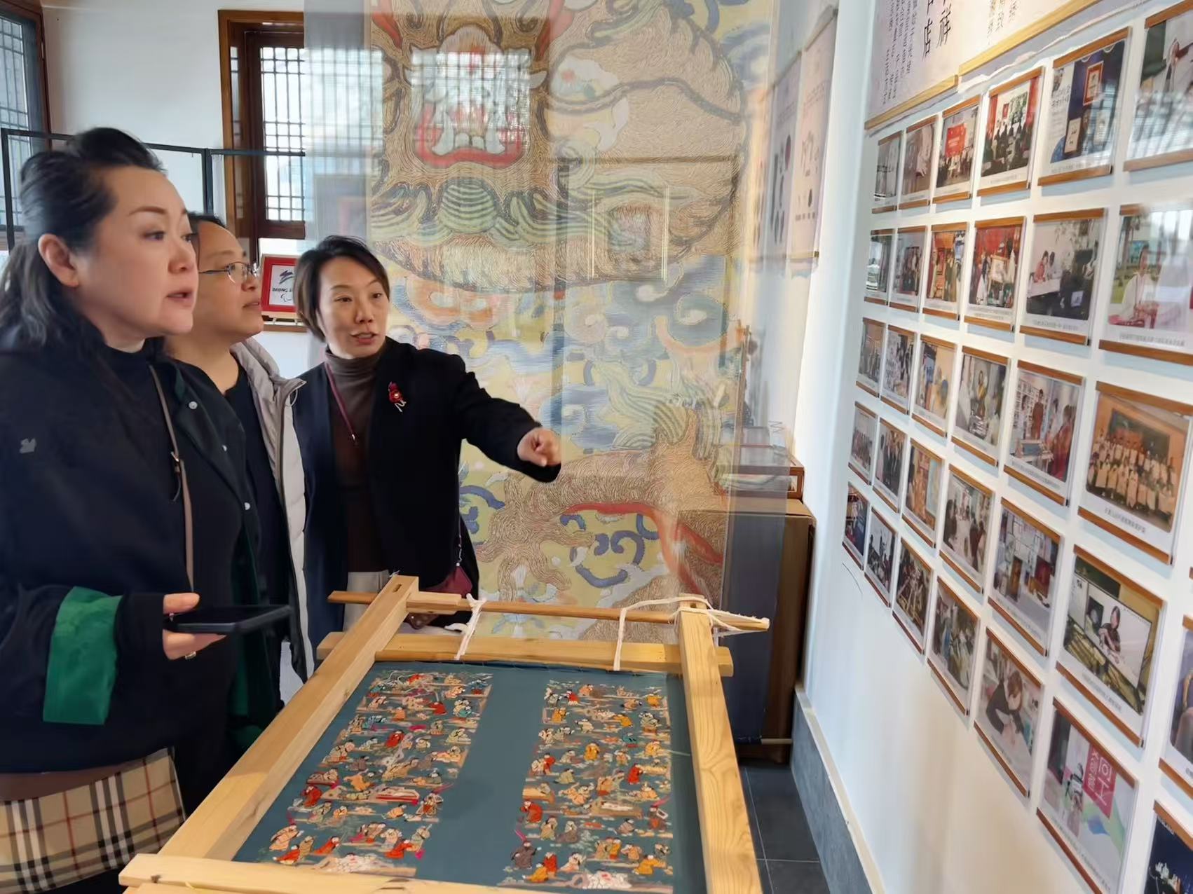 双方共同参观了周口店遗址博物馆,先后走访了良各庄村京绣传习工坊、染色植物种植地块、黄山店非遗小院、研学教室等。通过参观交流,充分了解了京绣文化、京绣产品制作工艺、非遗教学课程等情况,深刻感受优秀学生回乡创业助力乡村振兴的情怀和周口店镇对非遗文化传承和发展的重视。