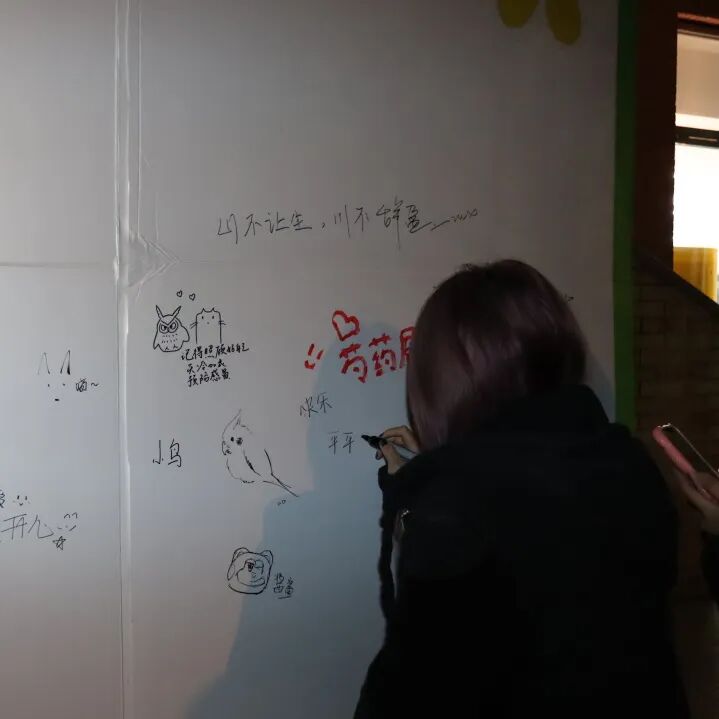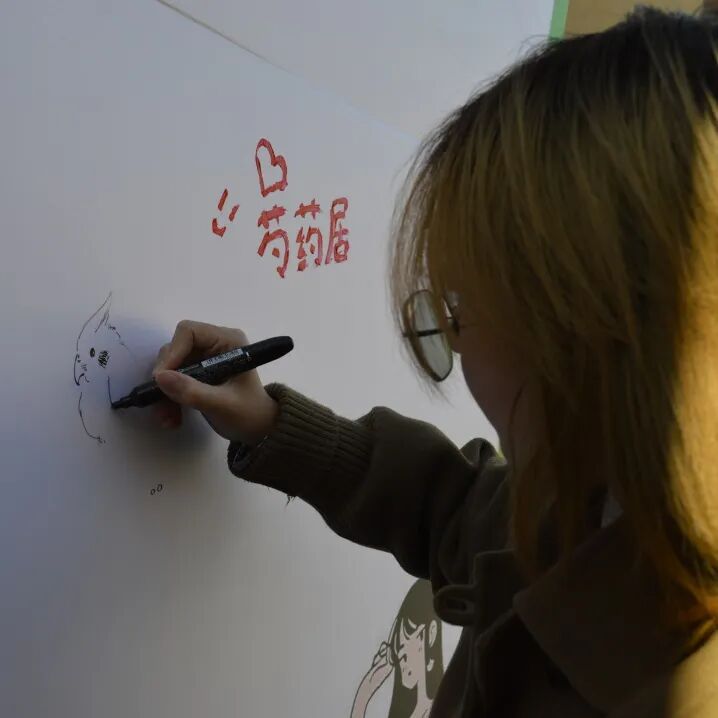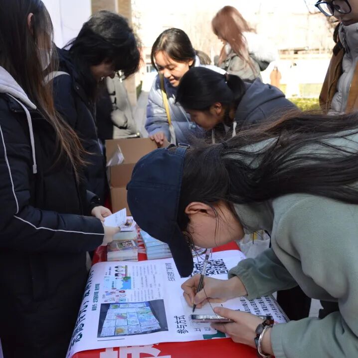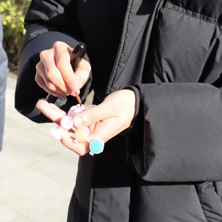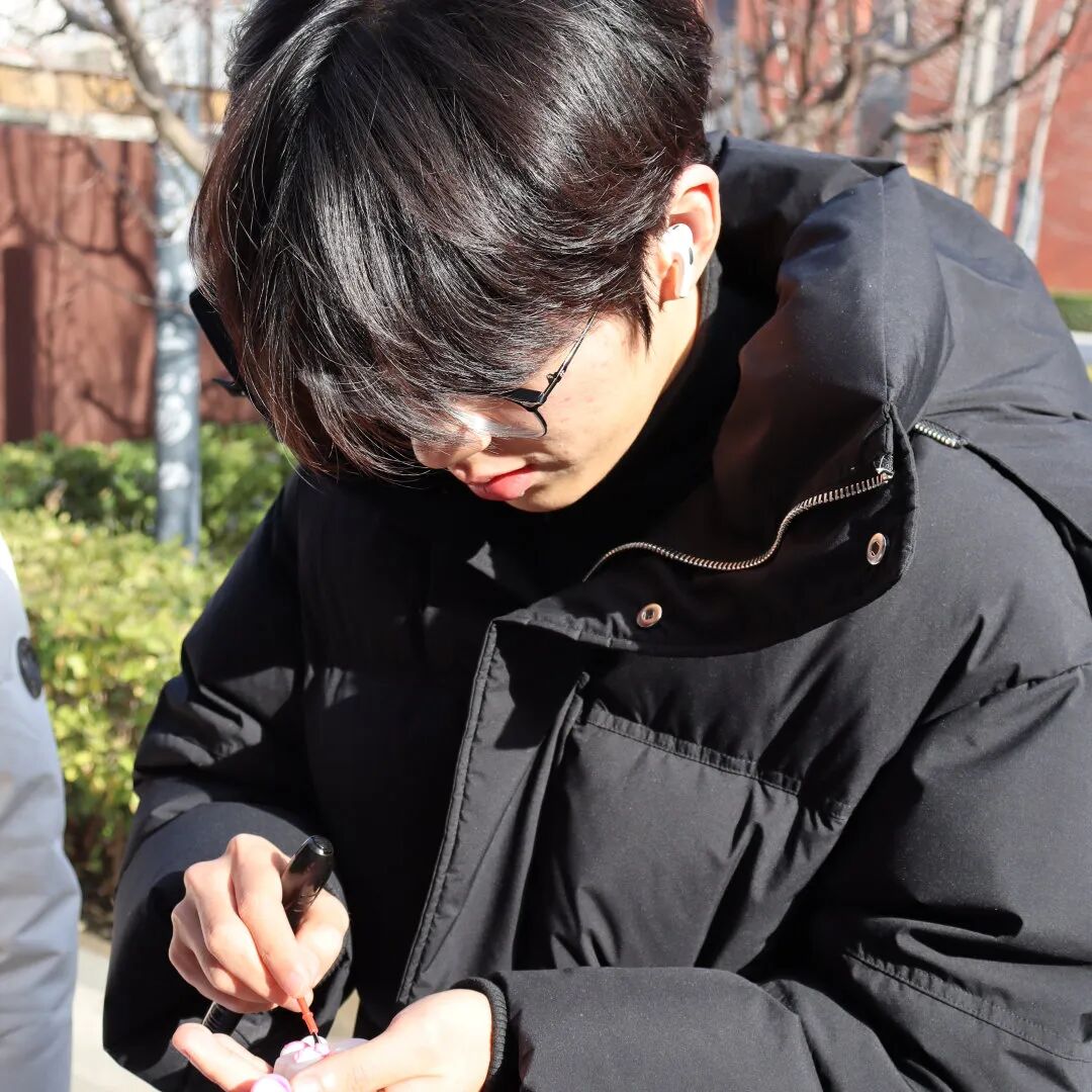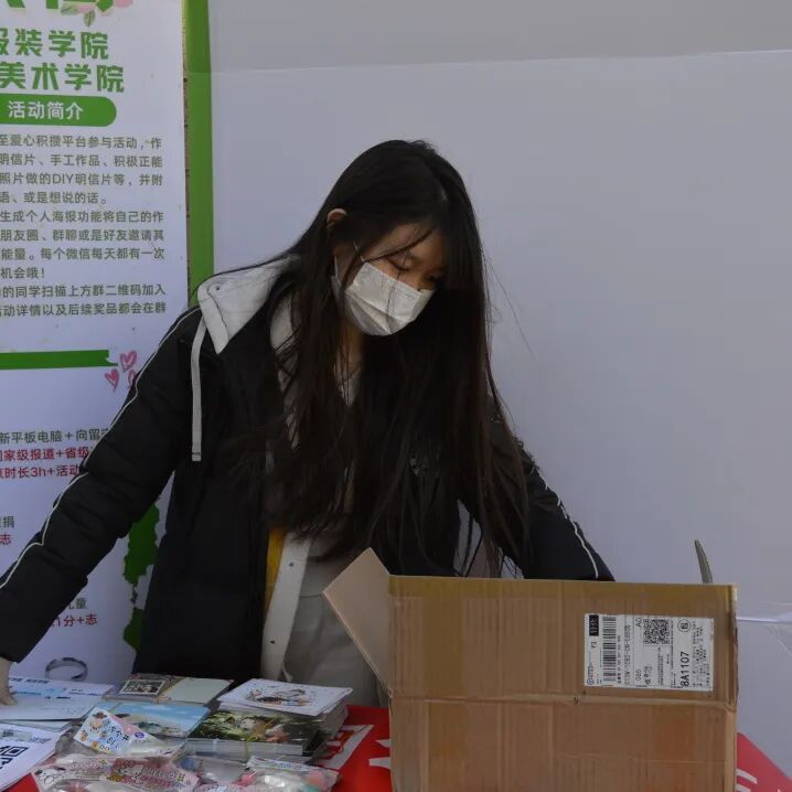 现场布置得井然有序,各式各样充满心意的道具静静地等待着每一位路过的同学。有人俯身,在明信片上写下了对孩子们的鼓励;有人驻足于“爱心树”下,写下亦或是画上了美好的愿景;还有人在素白的石膏娃娃上,点染了绚丽的色彩。一位同学表示:“一想到明信片能够翻山越岭地为远方的孩子带去温暖,这个下午就格外有意义。”