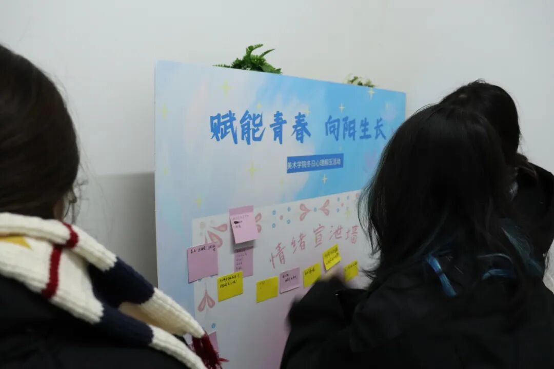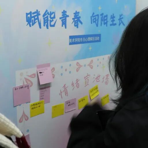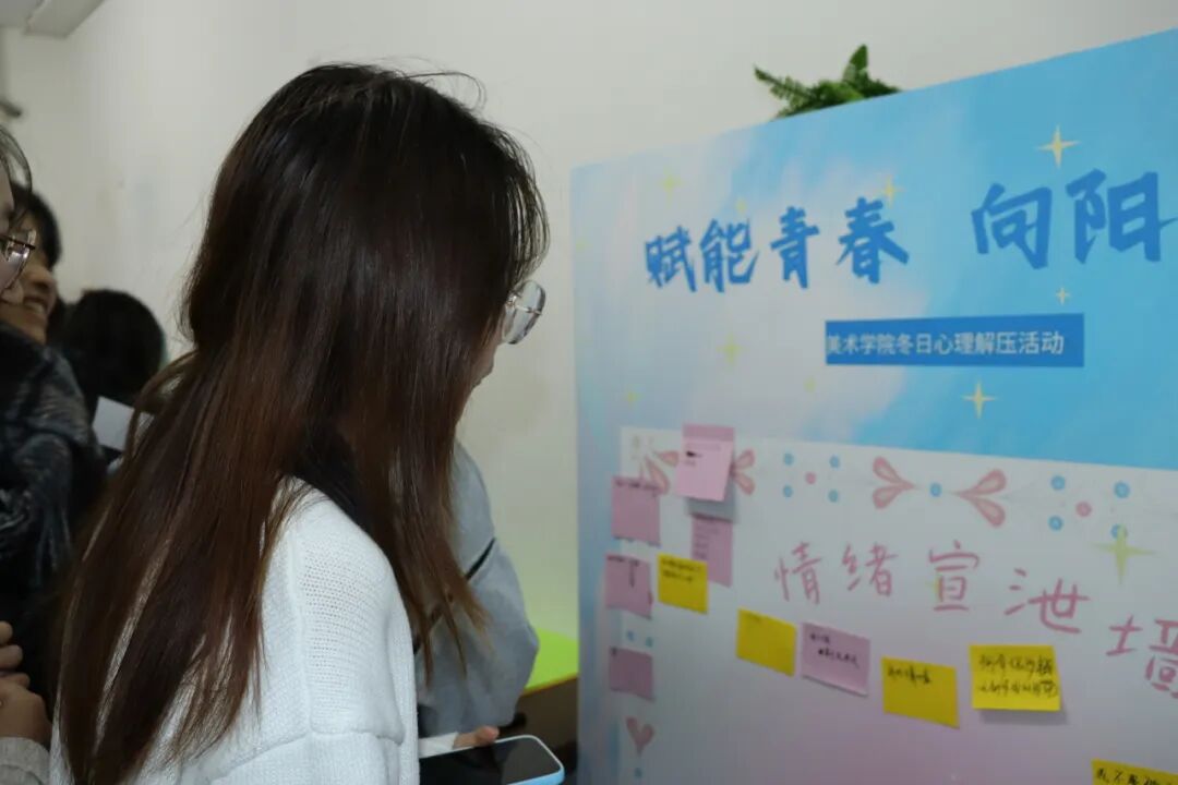随着轻柔的音乐响起,“情绪宣泄墙”环节为同学们提供了一个安全的匿名倾诉空间。大家将当下的烦恼与焦虑书写在彩色卡片上,亲手贴上展板,仿佛卸下了心中的重担。紧接着的“人格与色彩心理测试”则引导同学们走向更深层的自我探索,在了解自己的偏好与特质后,许多人在“成长树洞”信箱前驻足,认真写下困惑或期许,这些信件后续将得到暖心回复并分享,形成持续的心灵支持。“想和自己/ta做的一百件事”则鼓励同学们许下美好心愿,并通过打卡实践去创造和记录温馨时刻,完成者可获得冬日温暖礼品,让行动滋养情感。